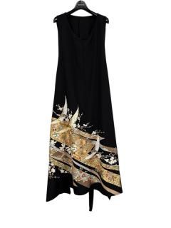 華やかな黒留袖シルク100%着物ワンピース。Aラインシルエットが綺麗で美しく痩せ見え。日常からフォーマルまで幅広く活躍。Made in Japanの確かな品質。