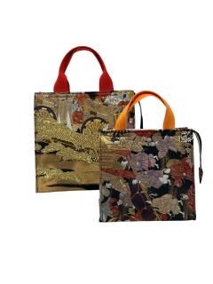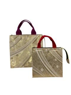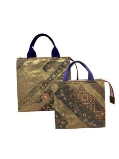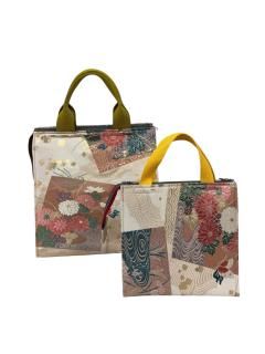 帯柄の保冷BAGセット!着物から洋服まで幅広く使えるデザイン。軽量で使い勝手抜群。食材や飲み物を冷たいまま持ち歩ける優れもの。デザインと実用性を兼ね備えたおしゃれな一点もの。オーダーメイドも可能。