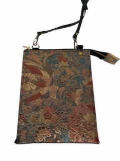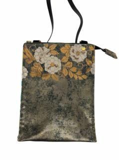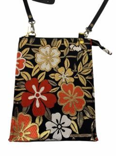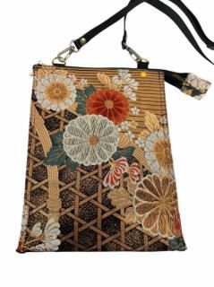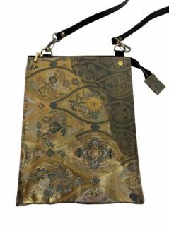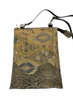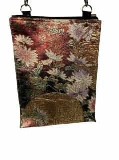 帯シルク100%素材の帯柄バック。紐は本革で長さ調節可能。着物好きに最適、男女問わず使いやすい。デザインと機能性の融合。