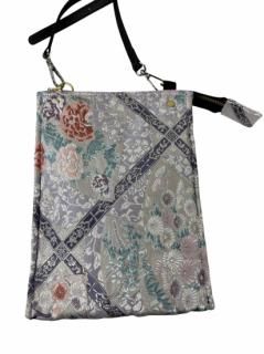 帯シルク100%製、斜め掛けで長財布や携帯も収納可能なdual-mode/帯ショルダーバック/男女問わず使いやすく、着物好きにもおすすめ。デザインはシンプルで機能的。