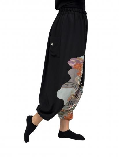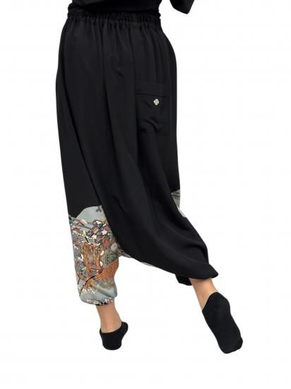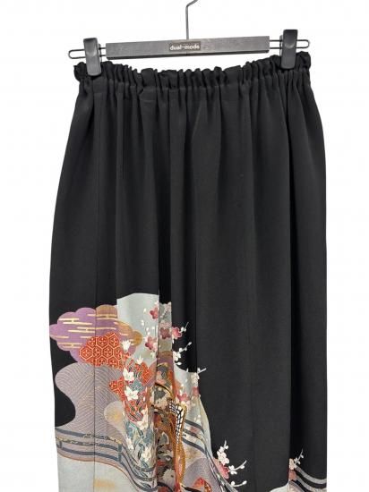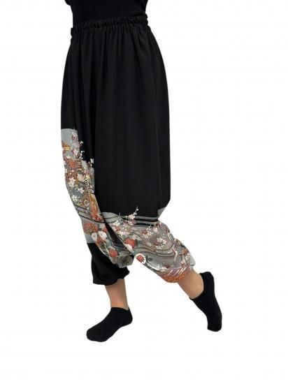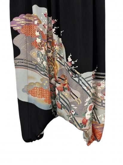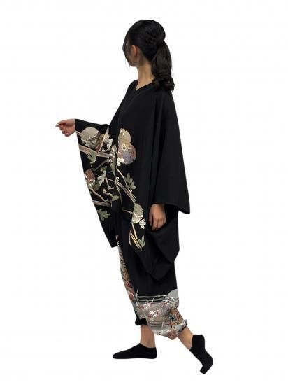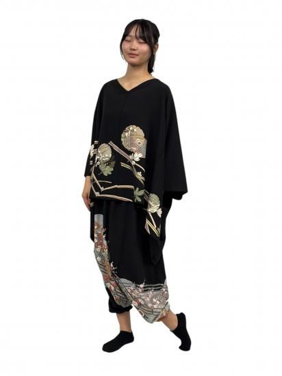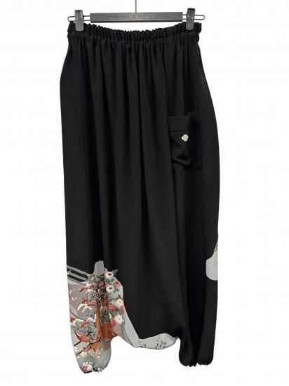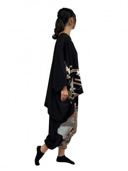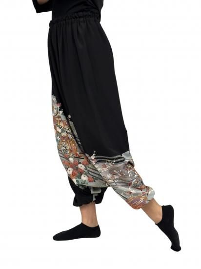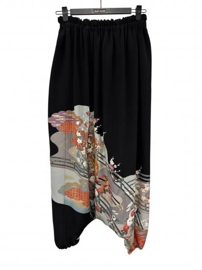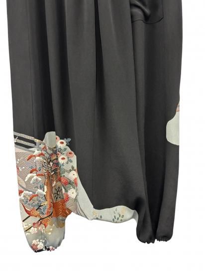 鶴柄のサルエルパンツ。黒留袖から製作。ゆったりサイズ。